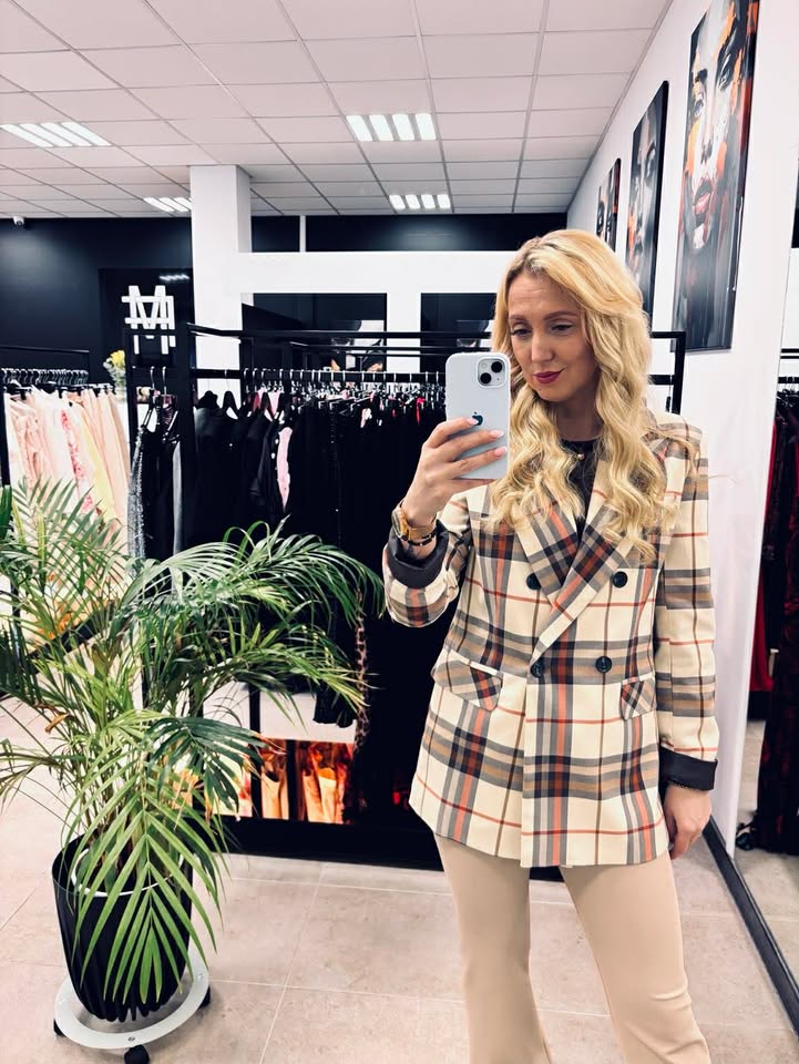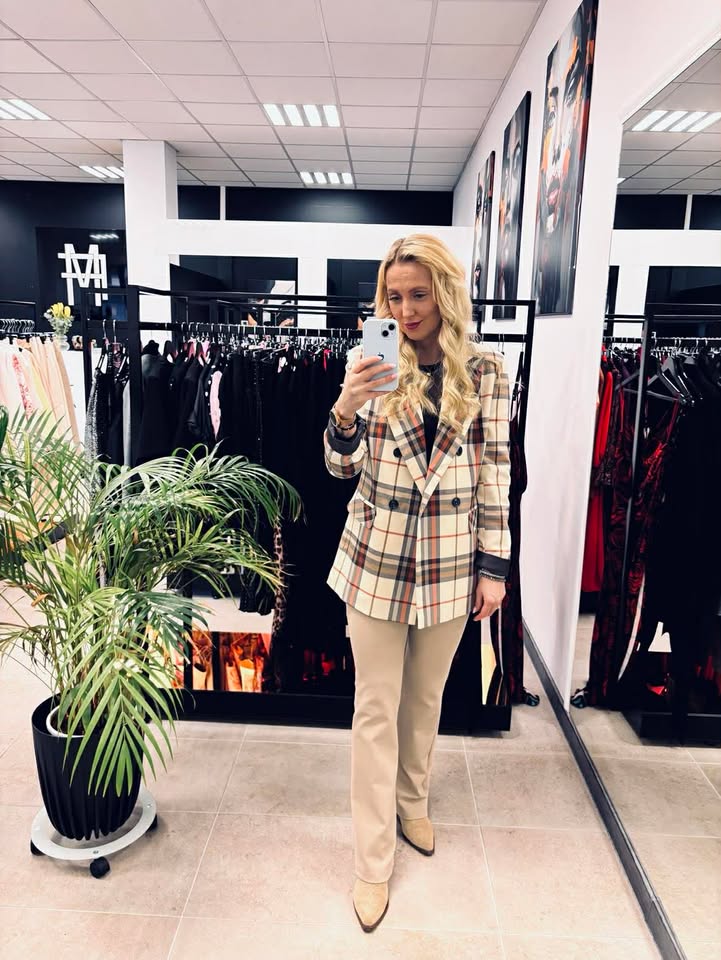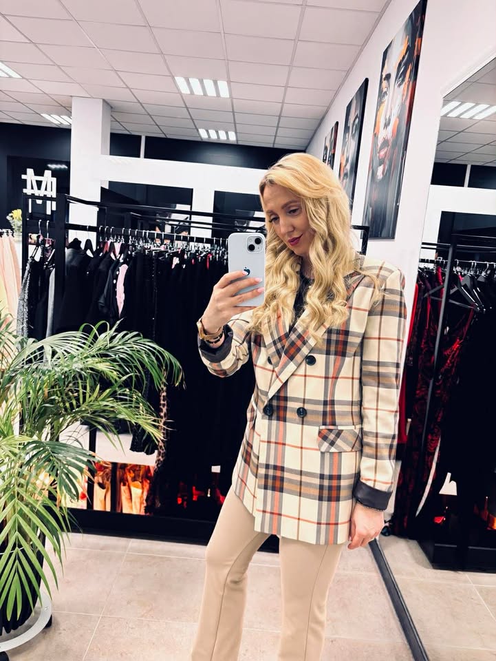 Dwurzędowa marynarka w kratę.